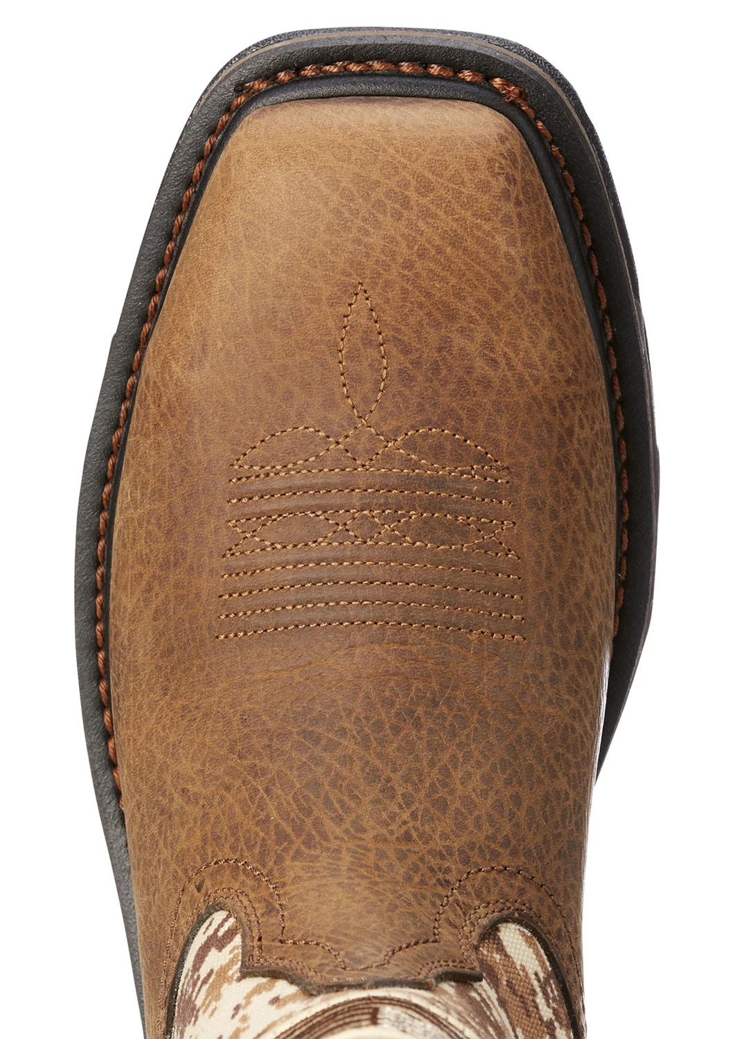 Full grain leather foot with sand camo printed shaft and American flag patch. Mesh lining. ATS Max technology for stability, support and foot fatigue reduction. EVA midsole. Oil and slip resistant Duratread outsole with 90 degree heel breast.Steel toe. EH. ASTM F2413-18 M/ I/ C EH compliant.