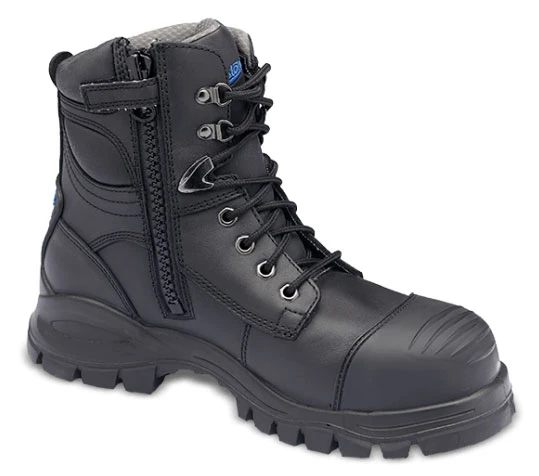 Water resistant leather upper. Molded TPU abrasion resistant toe overlay. Inside quarter zipper. Thermal regulating bamboo lining is anti-bacterial and anti-fungal. Comfort Arch PU footbed with XRD Extreme Impact Protection under ball. SPS Max-XRD Technology in heel and forepart strike zones. PU midsole. Oil and slip resistant rubber outsole is heat resistant to 572 degrees F.Steel toe. EH. ASTM F2413-18 M/ I/ C EH compliant.