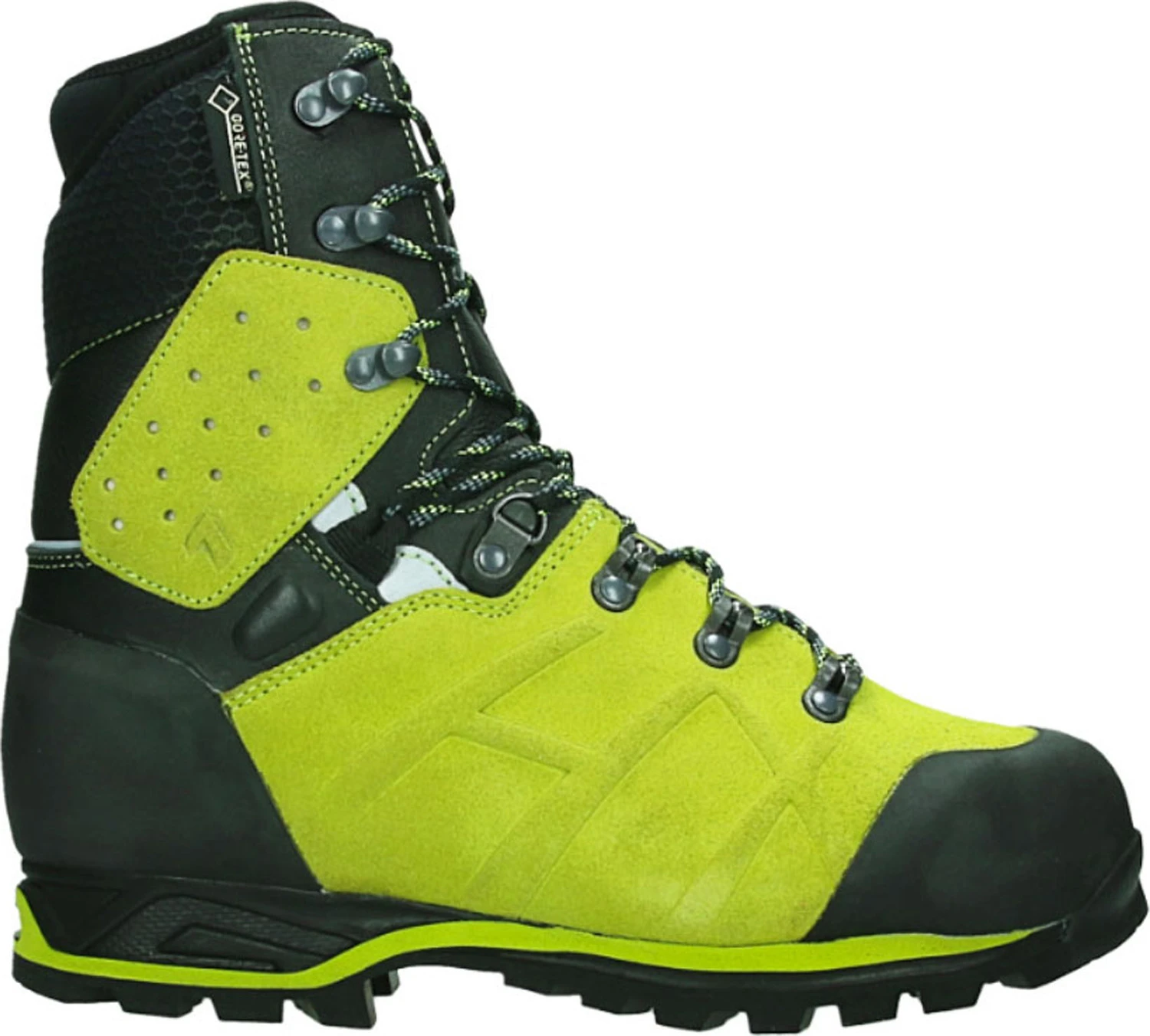 Nubuck leather upper with rubber toe and heel overlays. Reflective material at heel and ankle for better visibility. Soft top collar prevents sawdust and woodchips from getting inside.2 zone lacing allows for upper and lower boot snug fitting. Gore Tex membrane and Haix Climate System keep feet dry and temperature balanced. Secura Liner prevents lining from shifting and wrinkling.Machine washable, quick drying footbed. Slip resistant Vibram 050 outsole. Steel toe. EH. Nonmetallic puncture plate. Para-aramid European Class 2 cut protection.WP. ASTM F2413-18 M/ I/ C EH PR compliant. CSA grade 1 toe, Omega, green triangle compliant. Engineered in Germany. Manufactured in Europe.