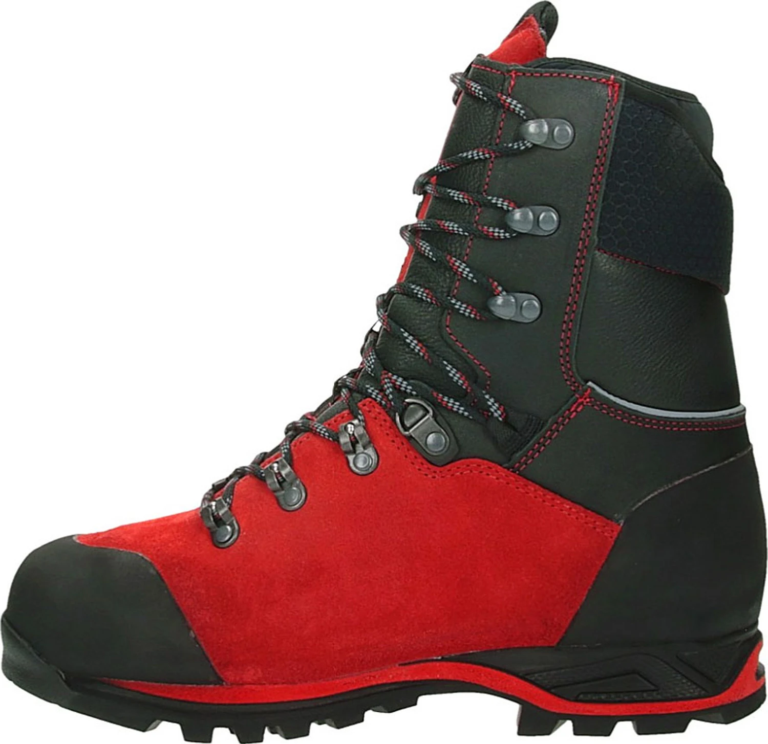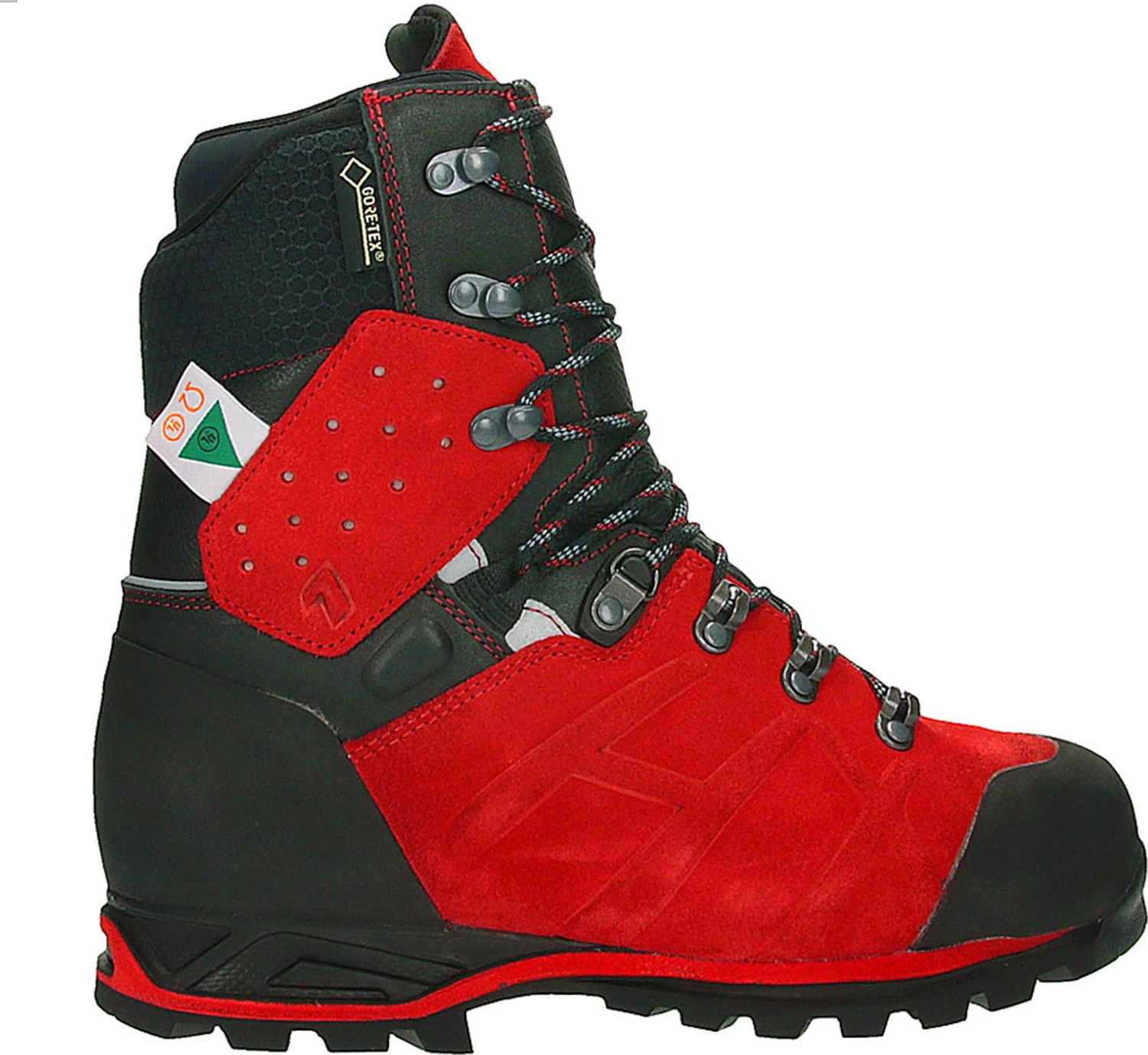 Nubuck leather upper with rubber toe and heel overlays. Reflective material at heel and ankle for better visibility. Soft top collar prevents sawdust and woodchips from getting inside. 2 zone lacing allows for upper and lower boot snug fitting. Gore Tex membrane and Haix Climate System keep feet dry and temperature balanced. Secura Liner prevents lining from shifting and wrinkling.Machine washable, quick drying footbed. Slip resistant Vibram 050 outsole. Steel toe. EH. Nonmetallic puncture plate. Para-aramid European Class 2 cut protection.WP. ASTM F2413-18 M/ I/ C EH PR compliant. CSA grade 1 toe, Omega, green triangle compliant. Engineered in Germany. Manufactured in Europe.