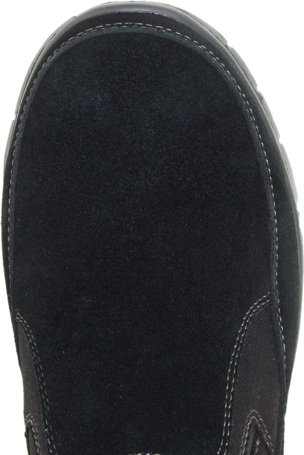 Leather upper. Twin side gores. Abrasion resistant mesh lining. Removable memory foam cushion footbed. Lightweight EVA cushion midsole. Rubber outsole pads for added durability. Steel toe. EH. ASTM F2413-18 M/ I/ C EH compliant.