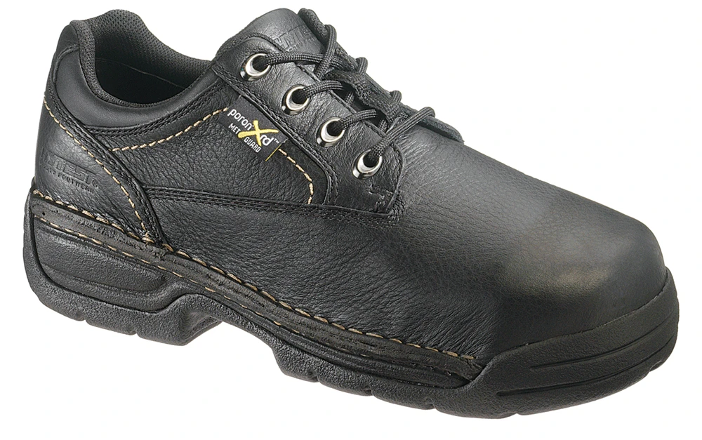 Full grain leather upper. Performance mesh lining. Full cushion insole with arch support. Flexible opanka construction. PU/rubber, oil and slip resistant midsole/outsole. Steel toe. EH. Contoured internal met guard.ASTM F2413-18 M/ I/ C EH Mt compliant.
