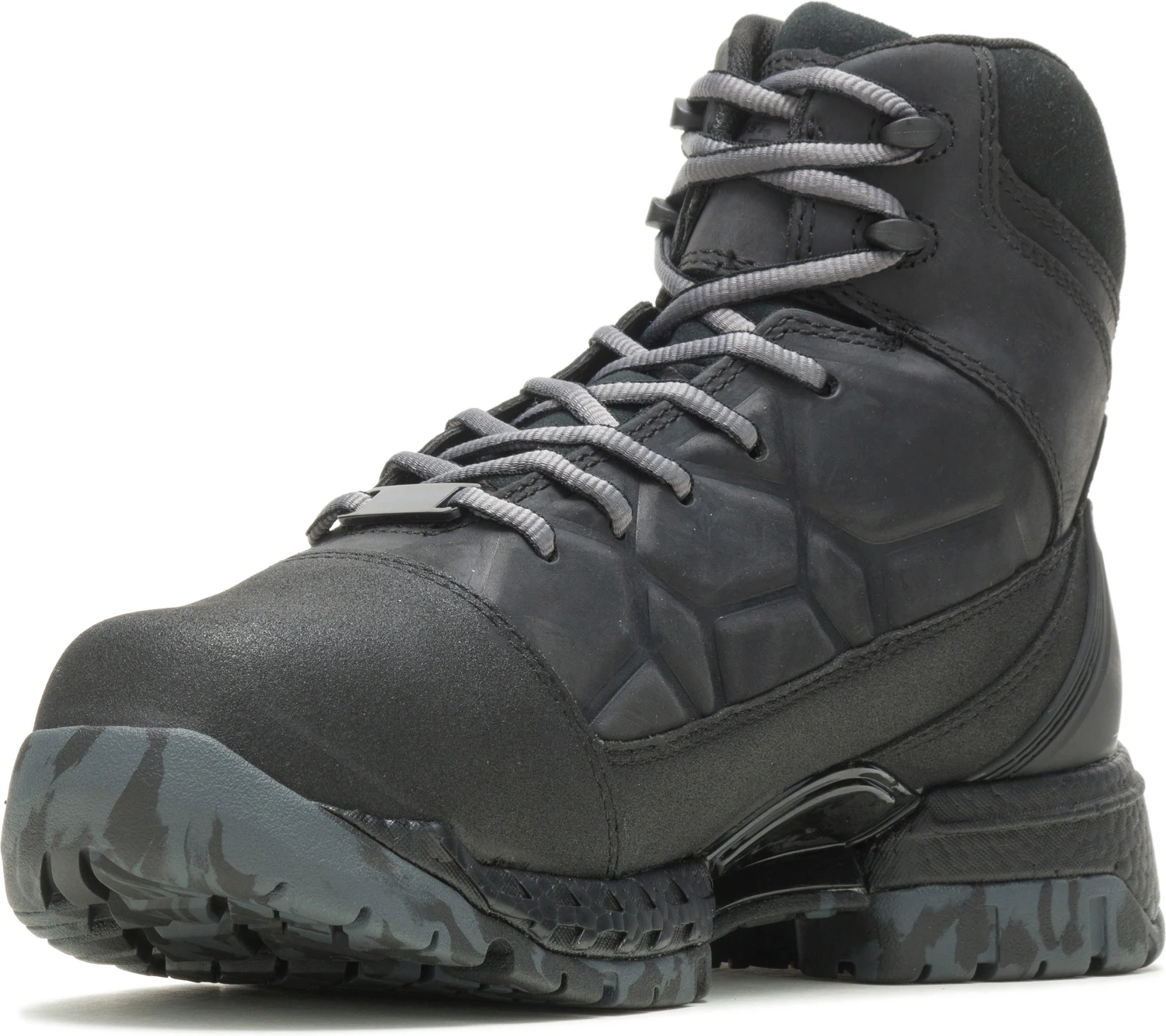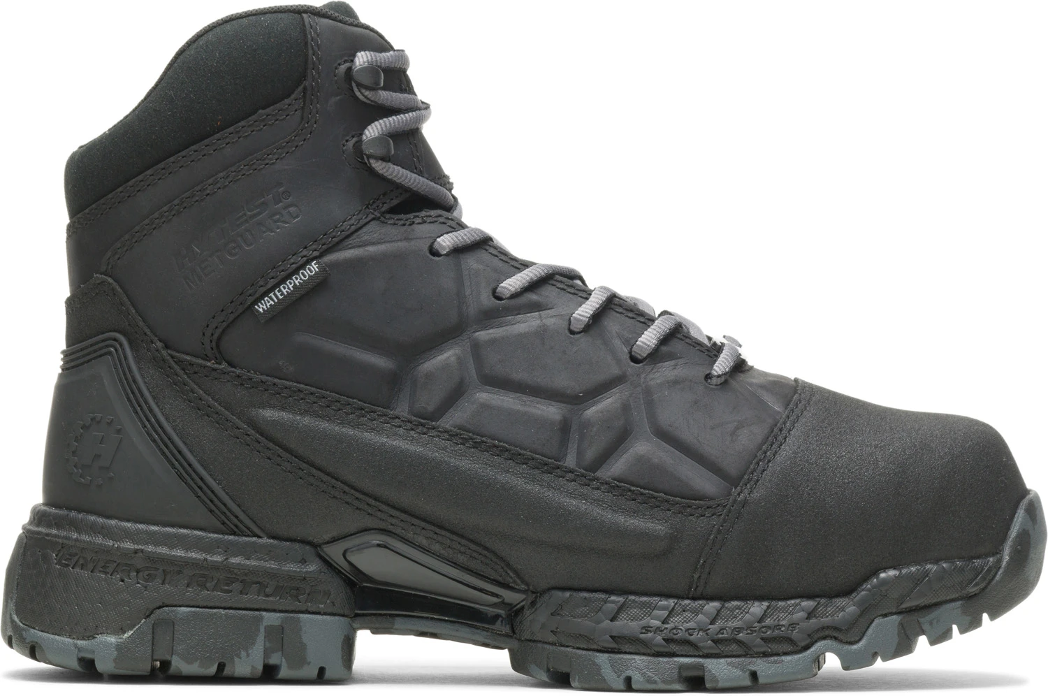 Full grain waterproof leather with TecTuff abrasion resistant toe. Moisture wicking mesh lining with waterproof membrane and CoreTemp temperature control technology. Removable FootRests tri-layer anti-fatigue footbed. Xergy anti-fatigue foam midsole. FootHolds oil and slip resistant rubber outsole. Nano toe. EH. Terrapin internal met guard. WP. ASTM F2413-18 M/ I/ C EH Mt compliant. 30 day comfort guarantee.
