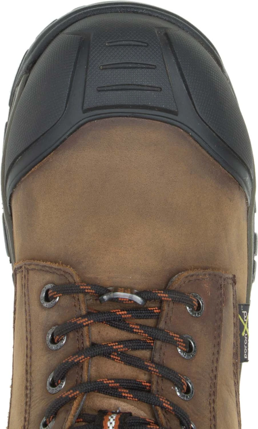 Waterproof full grain leather upper with high abrasion heel. Molded TPU toe guard for extra protection. Abrasion resistant mesh lining. Waterproof membrane for dry feet and breathability.Well-Max Flex puncture resistant insole. Molded PU High Energy performance midsole. Molded EVA stabilizer and foam footbed for added cushion and support. Dura-Tech oil and slip resistant rubber outsole.Poron XRD internal met-guard. Strobel/cement construction for flexibility. ASTM F2413-18 M/ I/ C EH Mt compliant.
