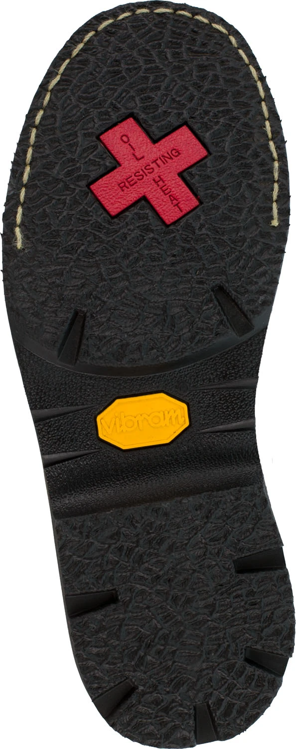 Leather upper with leather covered elastic gore side panels. Quick-Release elastic collar with two pull tabs. Moisture wicking mesh lining. BootBed dual layered, memory foam footbed. Vibram TC4 rubber outsole is heat resistant to 572 degrees F.Steel toe. EH. CushGuard internal met guard. ASTM F2413-18 M/ I/ C EH Mt compliant.