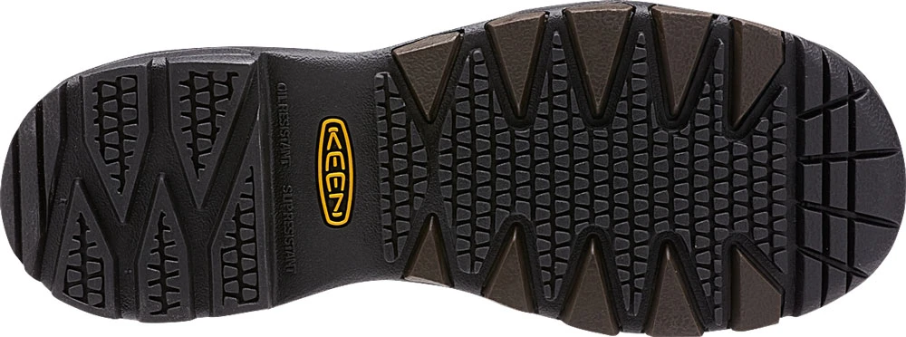 Abrasion resistant tough-tec leather upper. KEEN.DRY waterproof, breathable membrane lining. Removable metatomical dual density EVA footbed. Compression molded EVA midsole. Oil and slip resistant rubber outsole. Waterproof. Steel toe. EH. ASTM F2413-18 M/ I/ C EH compliant.