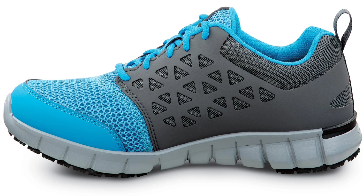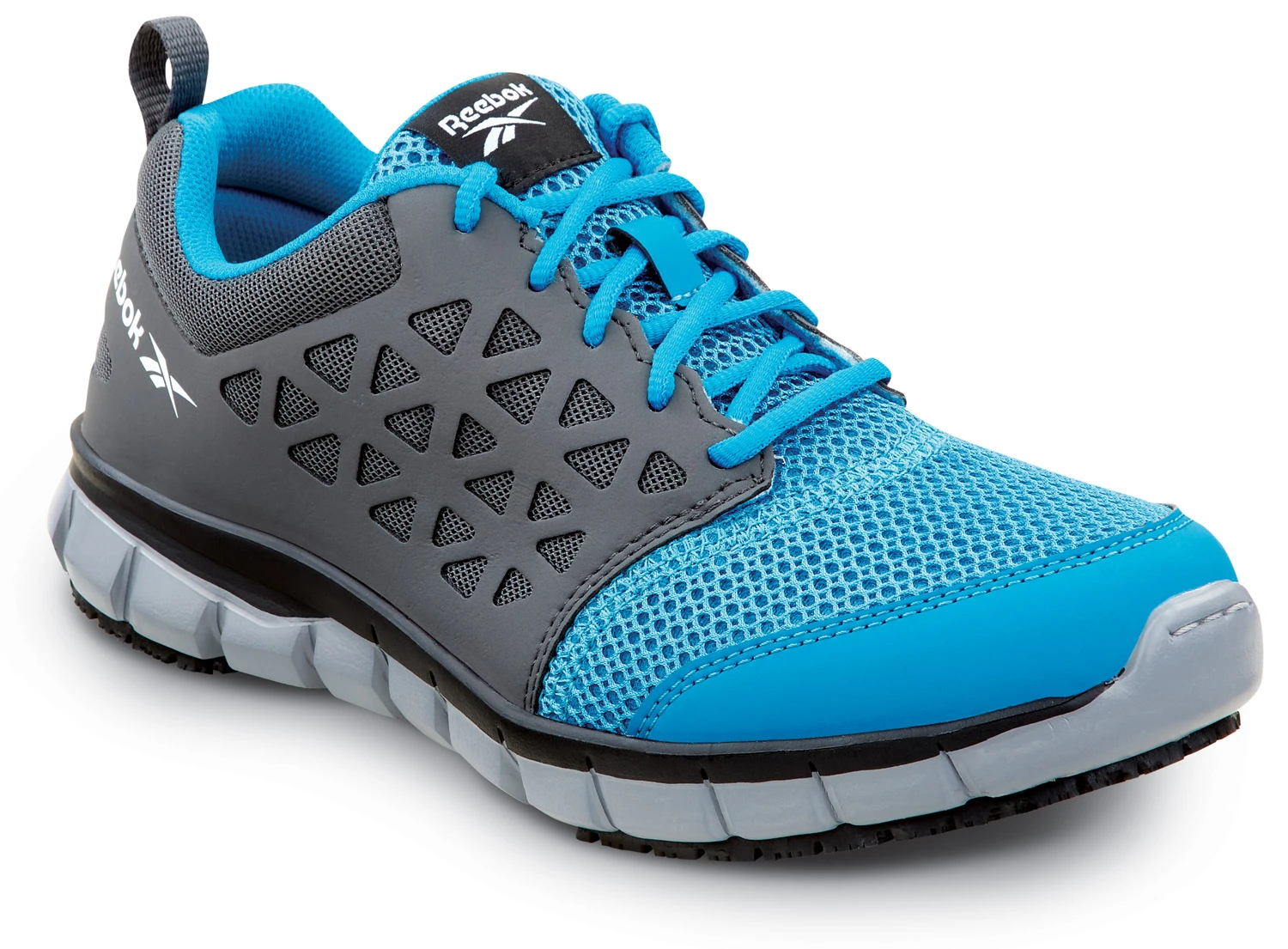 Reebok Work SRB3200 Sublite Cushion Work, Unisex, Sky Blue/Dark Grey, Athletic Style, MaxTRAX Slip Resistant, Soft Toe Work Shoe