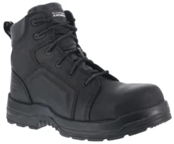 Nubuck leather upper. Fabric lining with waterproof membrane. Removable Comfortech cushion footbed. EVA midsole. Oil and slip-resistant rubber outsole. Comp toe. EH. ASTM F2413-18 F/ I/ C EH compliant.