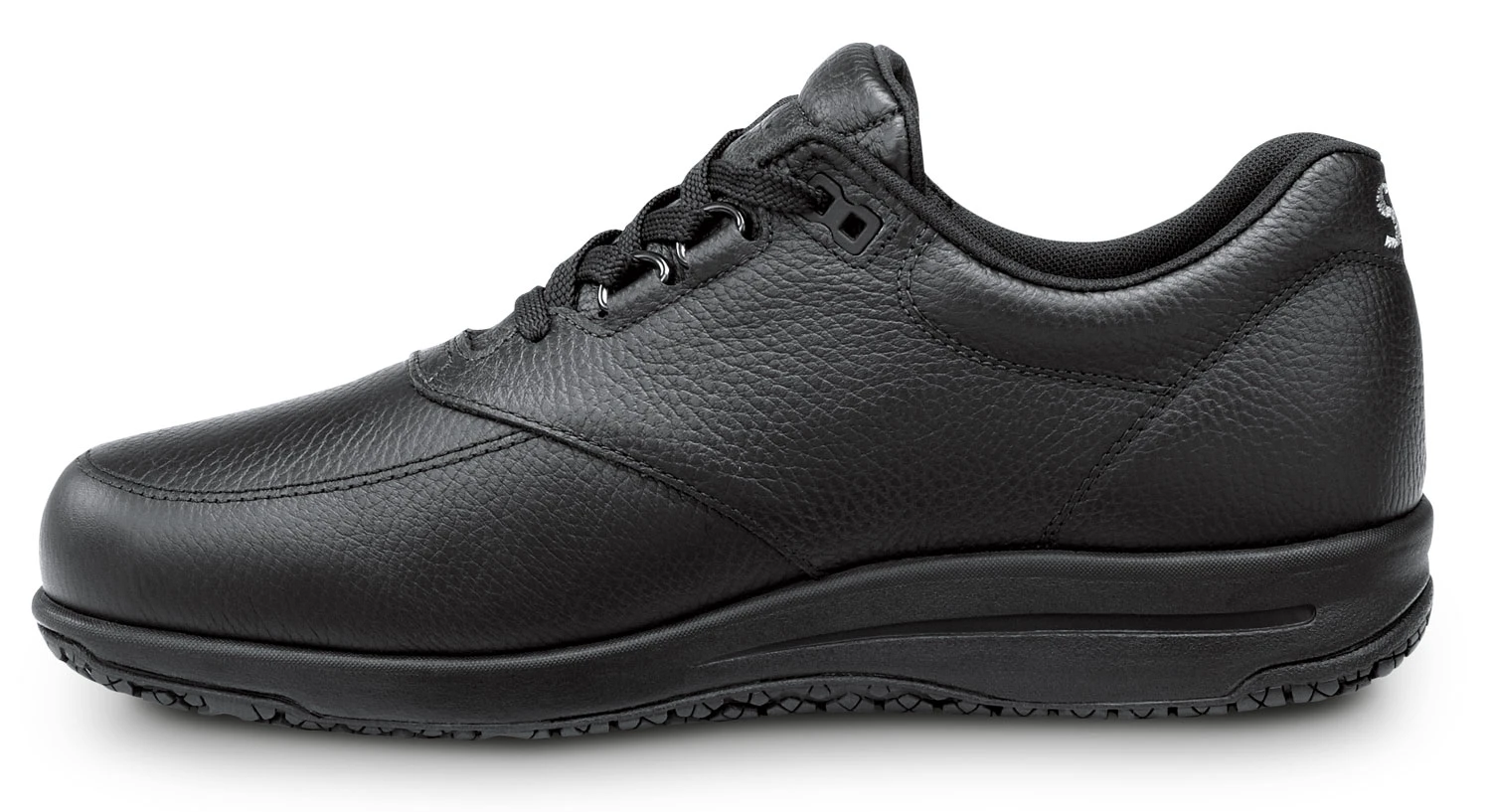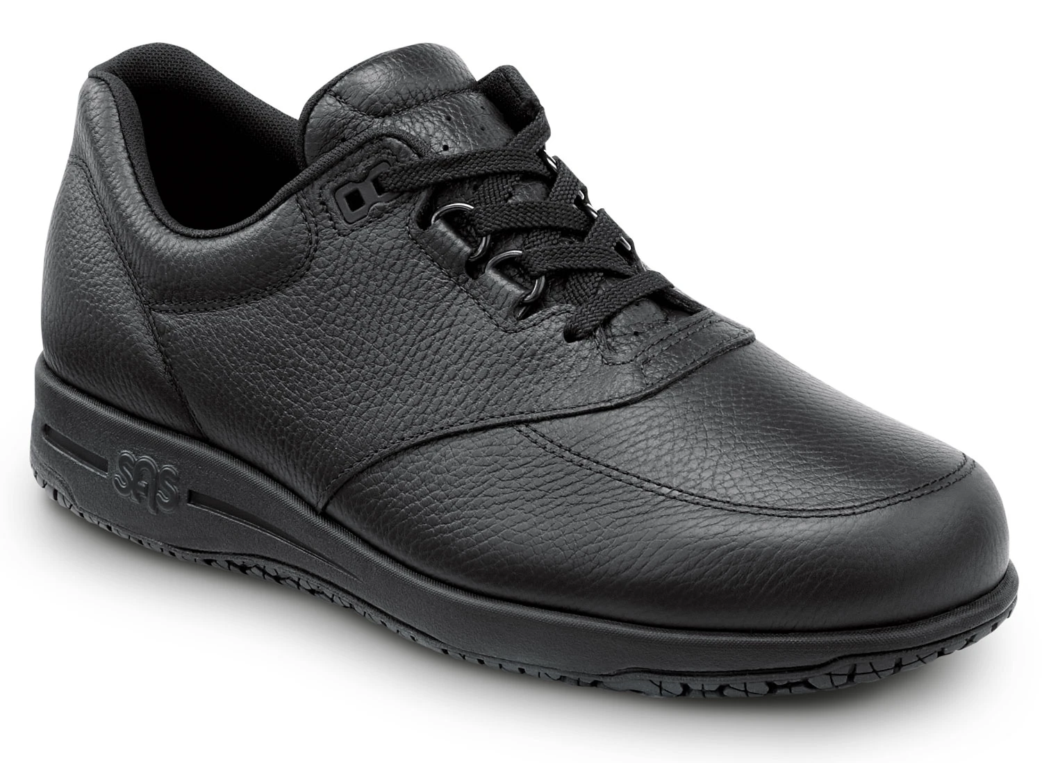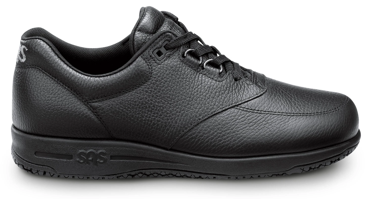 SAS Waterguard leather is water resistant. SAS Cool Step footbed with anti friction cover. TRIPAD cushioning at the inside ball, outside ball, and heel areas. Lightweight, flexible PU midsole. SAS X-Tra Grip slip resistant rubber outsole. Soft toe. No safety toe cap.