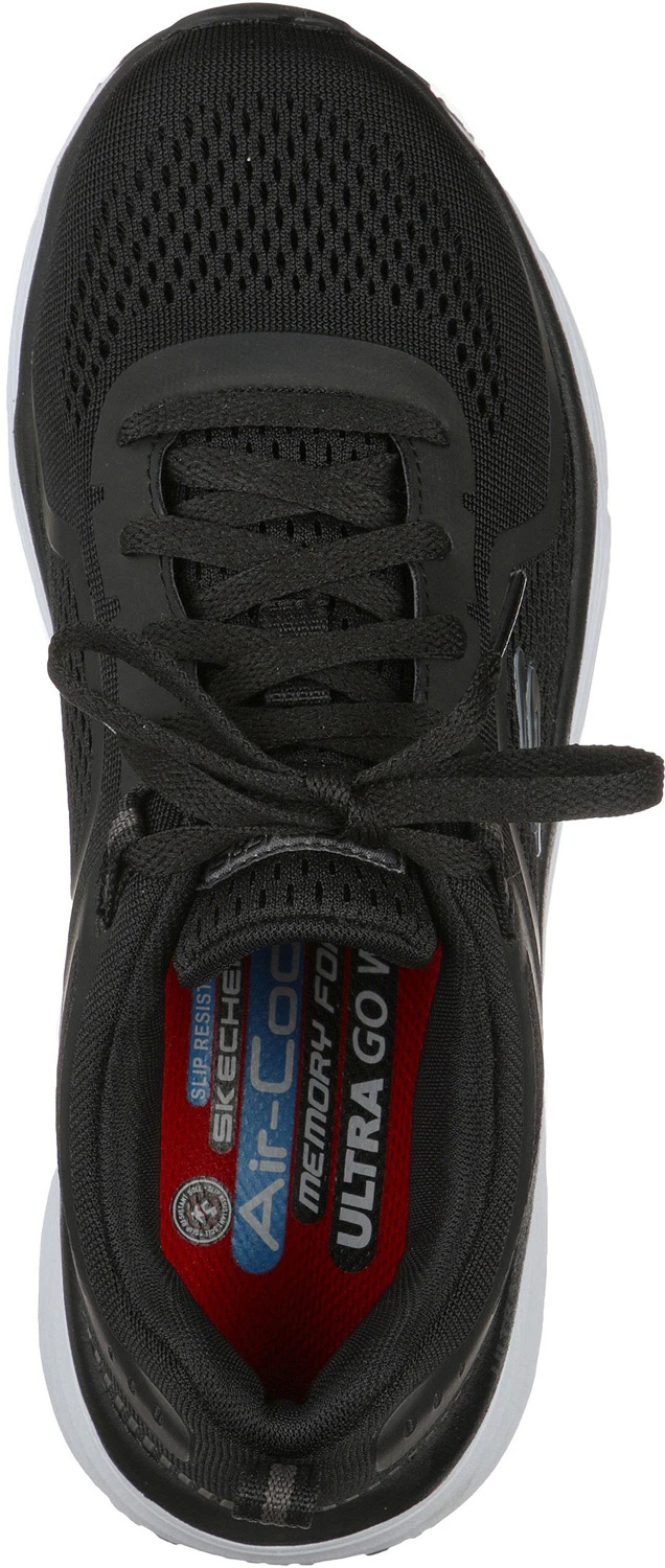 Breathable mesh knit upper. Aircooled memory foam cushioned footbed. Max Cushioning Elite design. ULTRA GO Work cushioning platform for shock absorption. Oil and slip resistant rubber outsole. Soft toe. No safety toe cap. Machine washable.