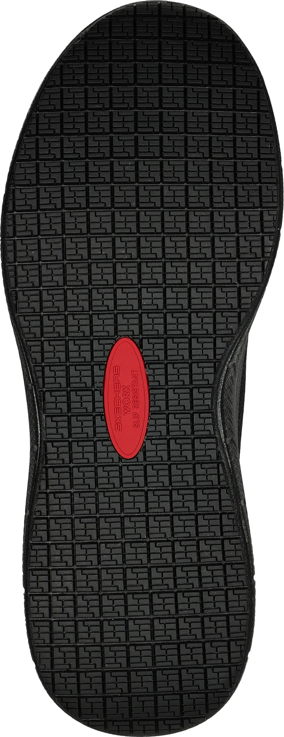 Knit mesh and synthetic upper with stretch lace feature. Skechers Hands Free Slip-ins™ technology molded heel panel for easy entry. Heel Pillow feature holds foot securely in place. Air-Cooled Memory Foam footbed. Slip resistant traction outsole. Soft toe. No safety toe cap. ASTM EH compliant.