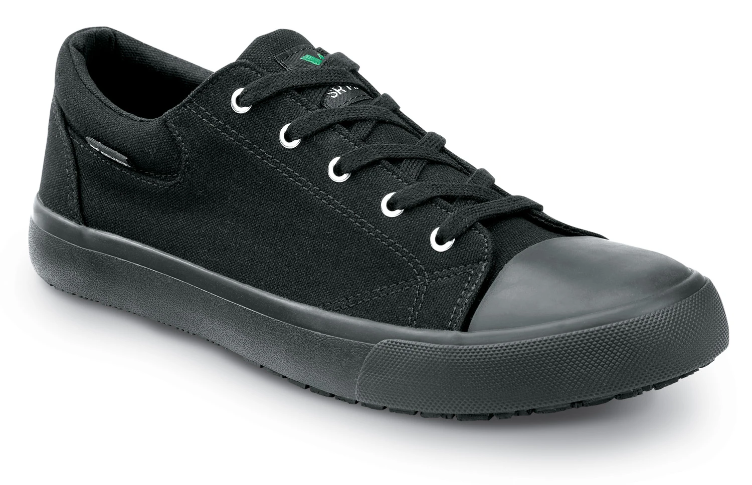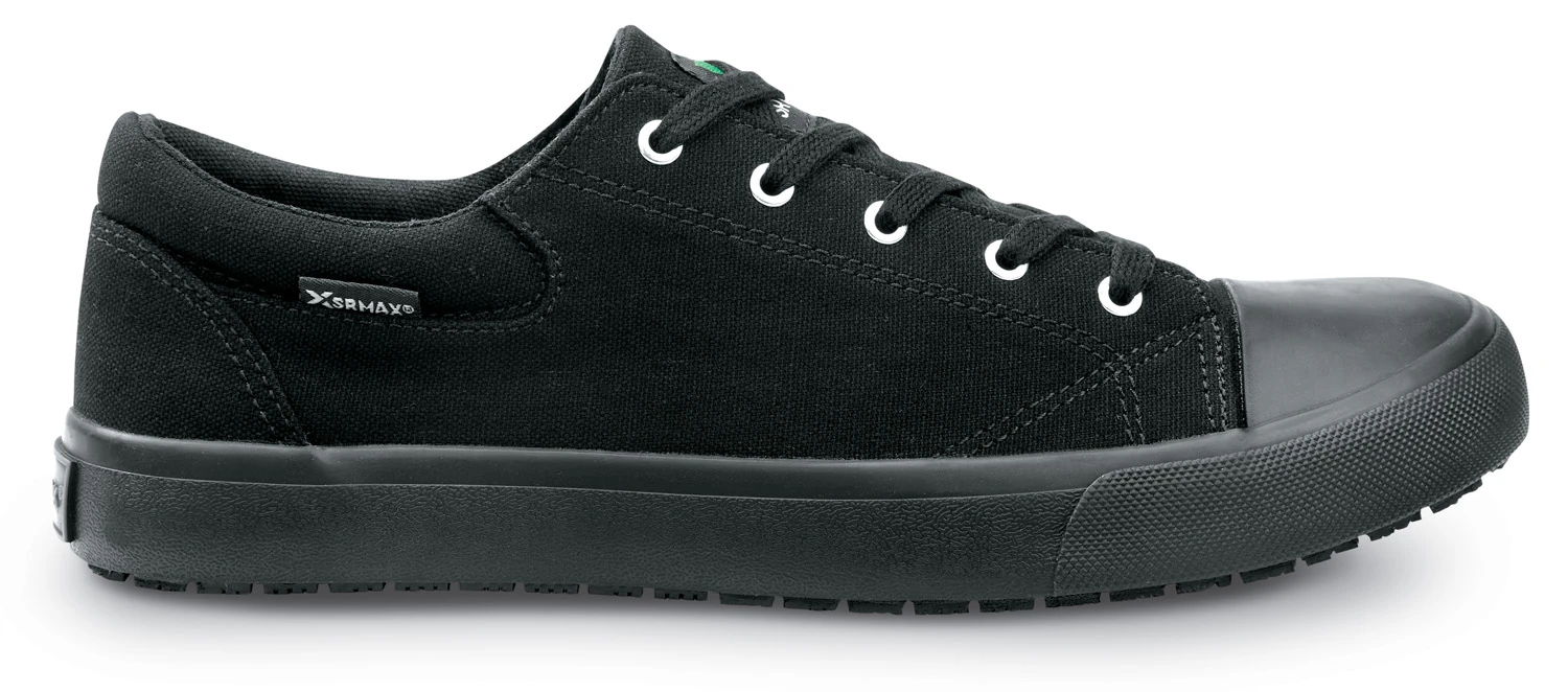 100Z canvas textile upper treated with DuPont Teflon fabric protector. Canvas lining. PU with memory foam footbed. SR Max MaxTRAX patented oil and slip-resistant rubber outsole. Vulcanized construction. Soft toe. No safety toe cap.