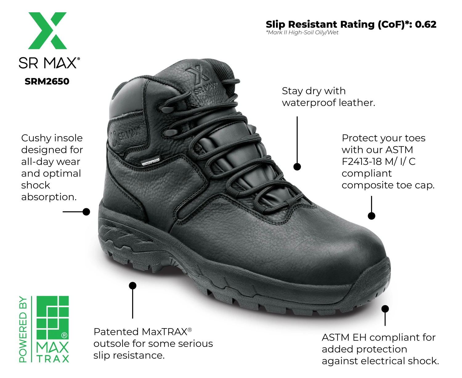 Be the first to review “SR Max SRM2650 Denali, Men’s, Black, Hiker Style, Comp Toe, EH, Waterproof, MaxTRAX Slip Resistant, Work Boot” Cancel reply