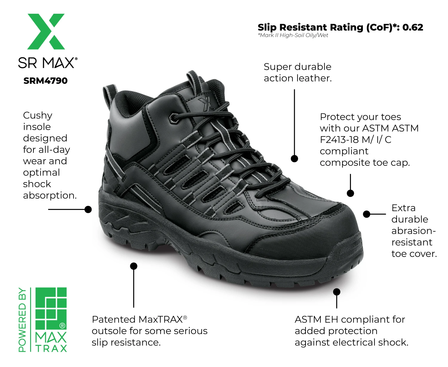 SR Max SRM4790 Boone, Men’s, Black, Hiker Style, Comp Toe, EH, MaxTRAX Slip Resistant, Work Shoe