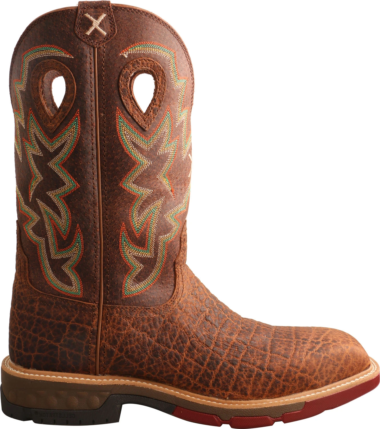 Full grain leather shaft with reinforced pull tabs. Air mesh lining. Twisted X patented CellStretch comfort technology. Molded, removable footbed is moisture wicking, anti-bacterial, and machine washable.EVA molded midsole. Oil and slip resistant rubber outsole. Double stitched storm welt construction. Nano toe. EH. ASTM F2413-18 M/ I/ C EH compliant.