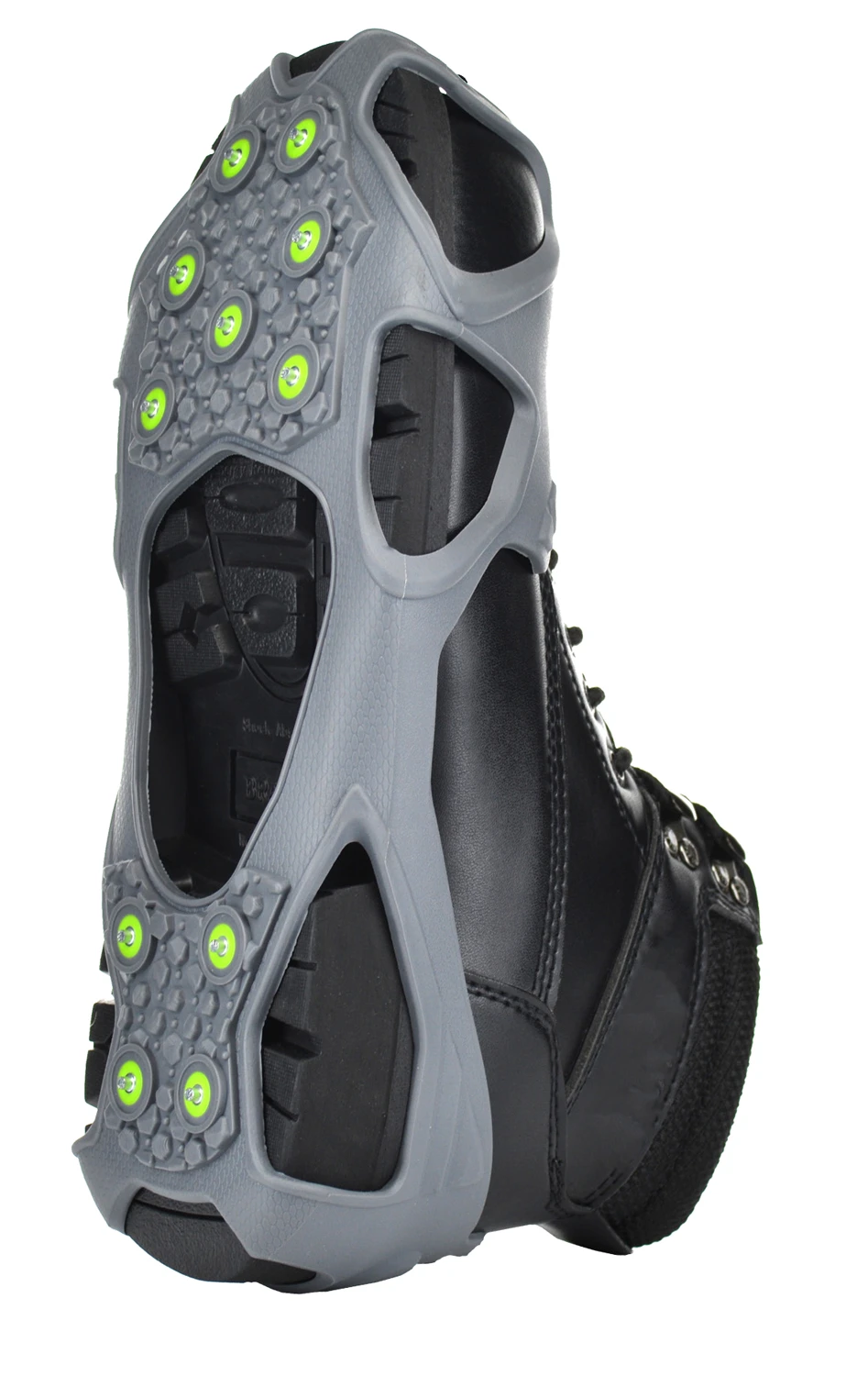 The EASY-SPIKE ice cleat is a compact and light weight industrially designed winter traction device that fits easily over all types of shoes and boots. Low temperature elasticity for guaranteed stretch.Twenty two molded in carbonized steel studs for durable and permanent traction on slippery and icy conditions. Not a safety device, designed for ourdoor use only. Pictured boot for example only, not included with EASY SPIKE purchase.Size Conversions: S (Mens 4.5-6.5 | Womens 6.5-8.5), M (Mens 7-8.5 | Womens 9-10.5), L (Mens 9-11 | Womens 11-12), XL (Mens 11.5-13.5)