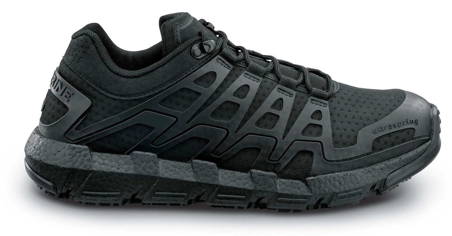 Breathable mesh upper with molded TPU reinforcements. Moisture wicking mesh lining. Removable, full cushion, low density PU footbed. UltraSpring high rebound ETPU cushioned midsole. Oil and slip resistant SR Max MaxTRAX patented rubber outsole. Soft toe. No safety toe cap. ASTM EH compliant.