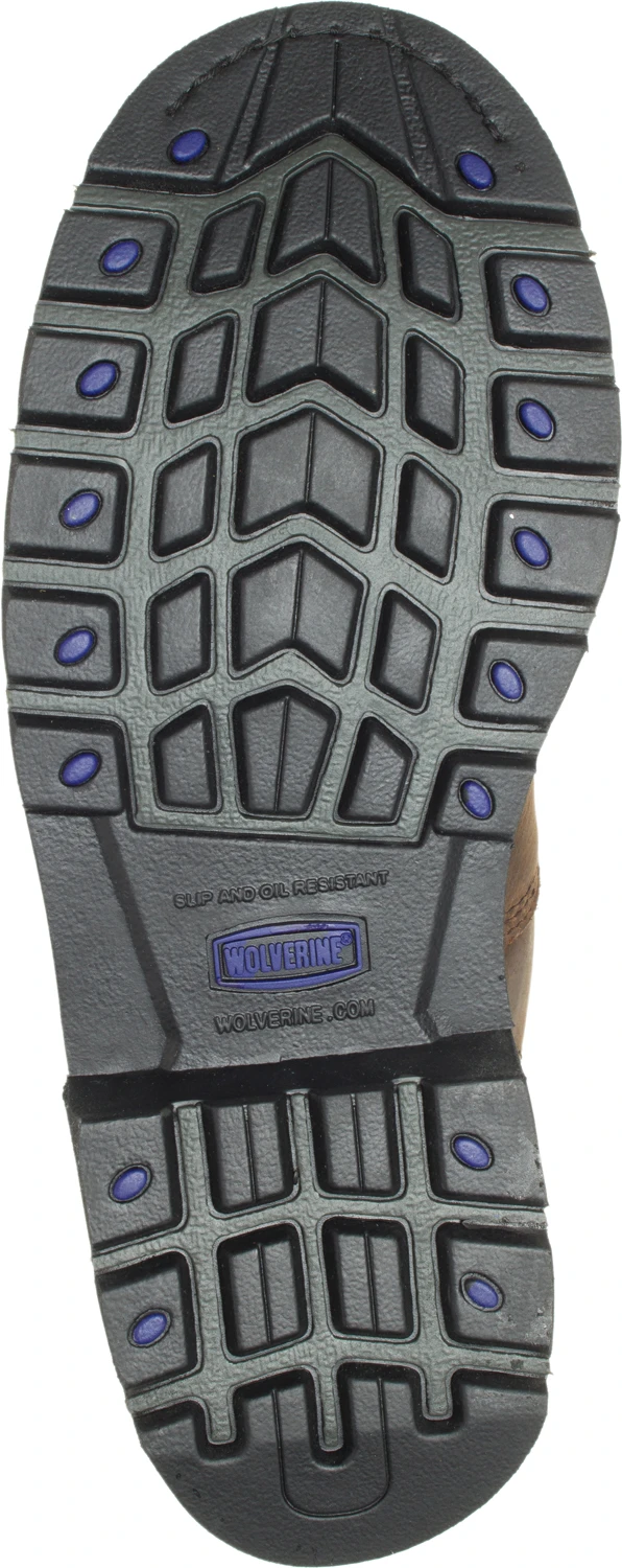 Full grain leather upper. Waterproof CK mesh lining. Removable full cushion footbed. Wolverine slip resistant PU/rubber outsole. Goodyear welt construction. Waterproof. Steel toe. EH. Internal met guard.ASTM F2413-18 M/ I/ C EH Mt compliant.